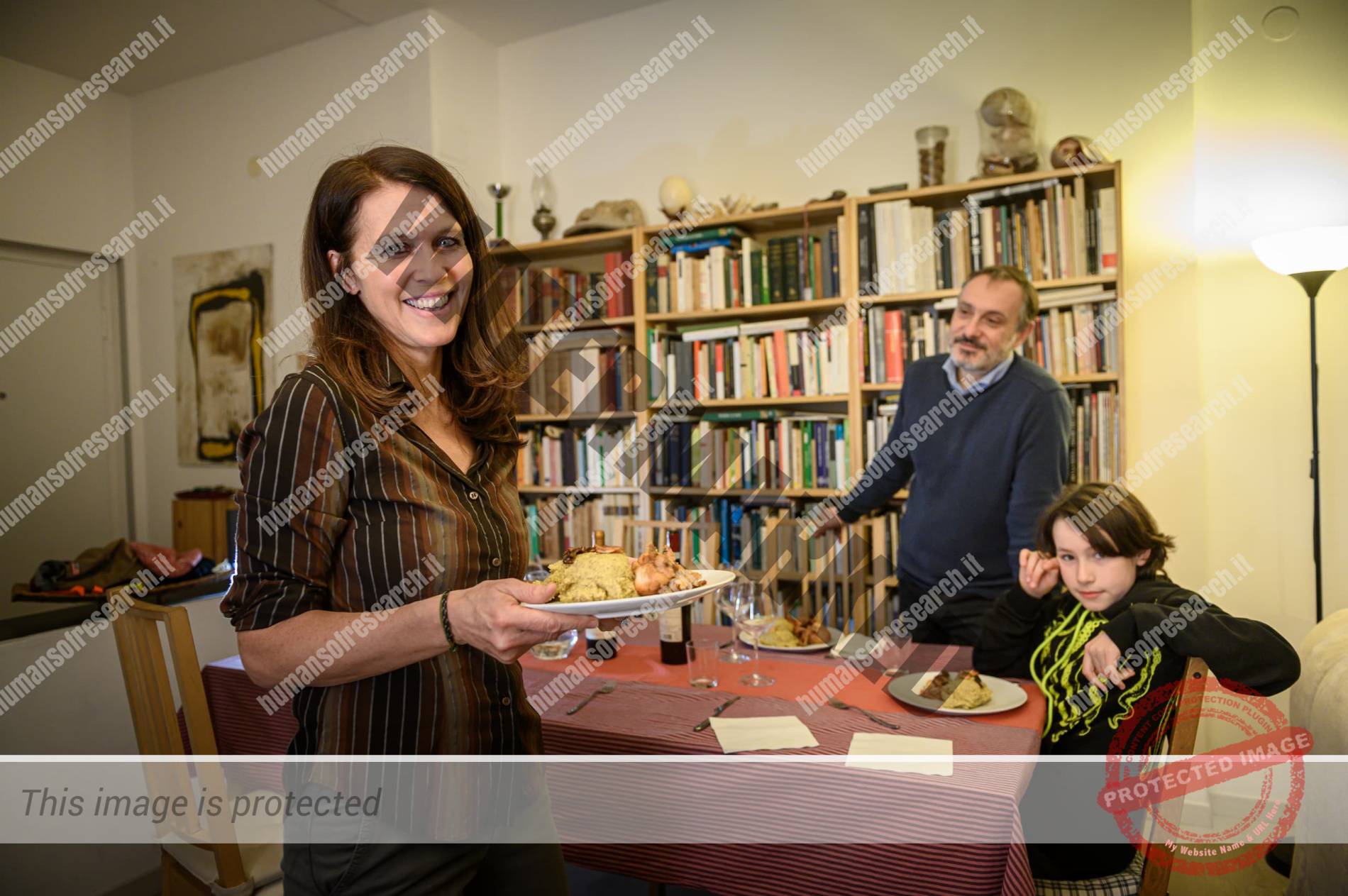 Diffidenza che si dissolve al primo brindisi e soprattutto grazie alla simpatia di suo marito Leonardo e del piccolo di casa Federico.